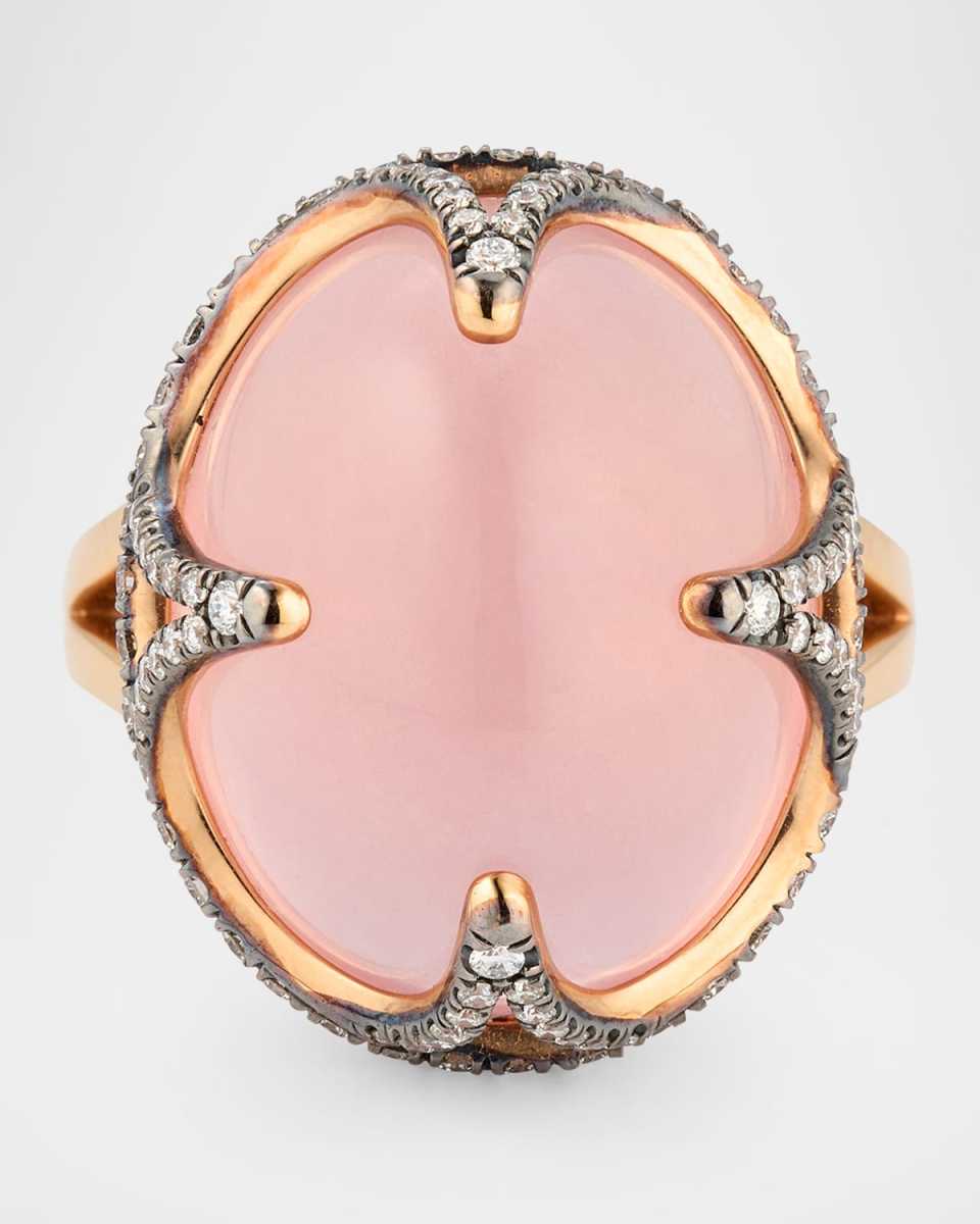 Robert Erich cocktail ring 18karat rose gold Round white diamonds Diamond total carat weight: 0.97 Oval rose quartz Quartz total carat weight: 21.96 Made in USA
