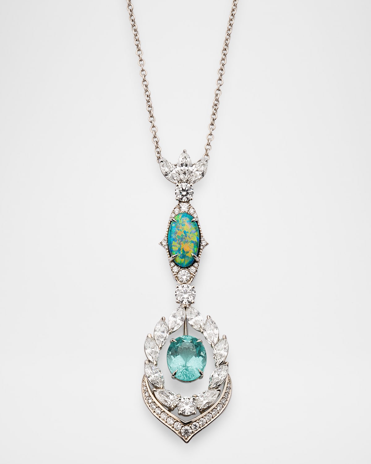 Platinum Diamond, Paraiba Tourmaline, and Black Opal Necklace