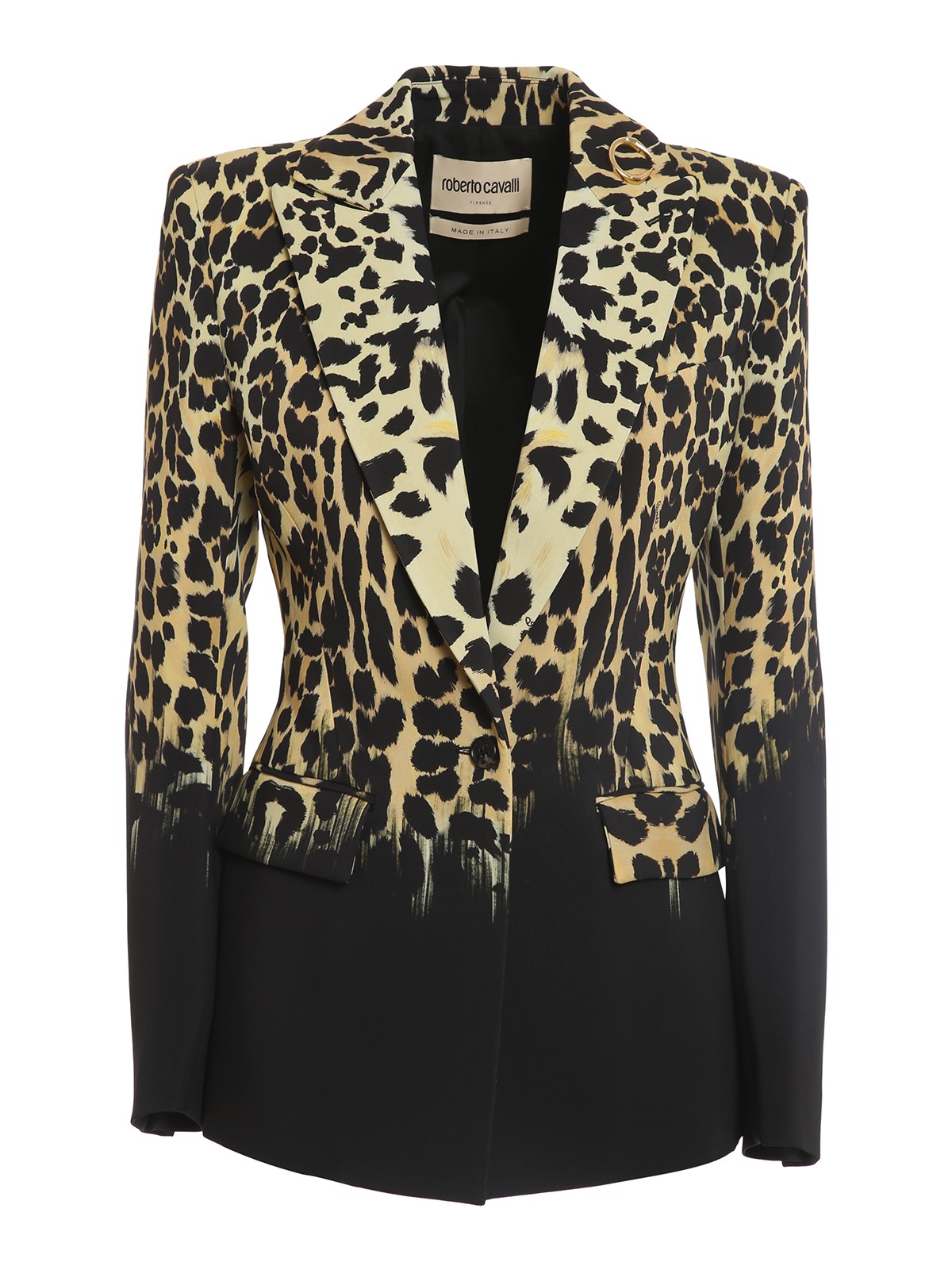 Blazer simple boutonnage à imprimé animal avec détail C en métal doré au niveau des revers, des épaulettes et de la fente arrière.