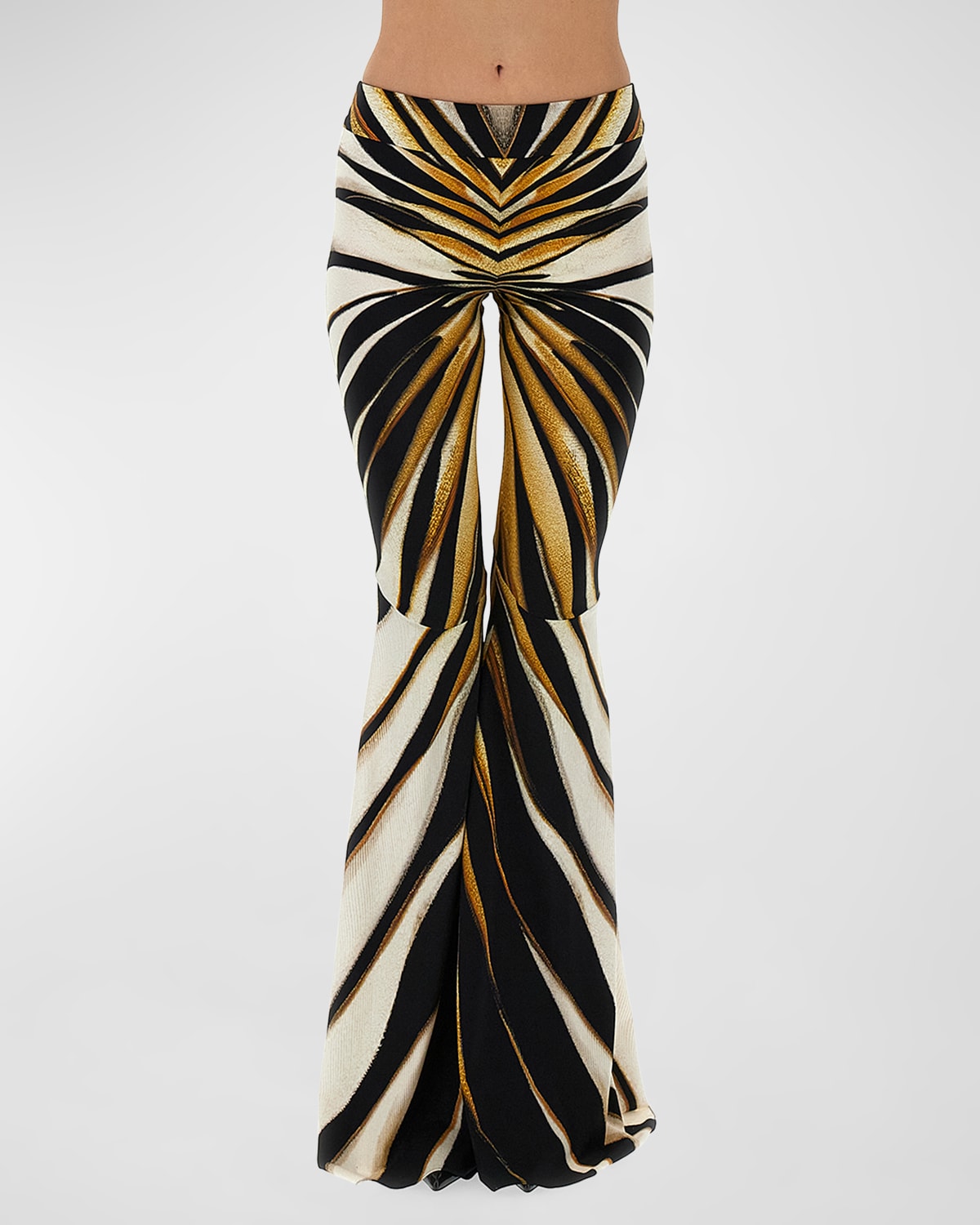 Roberto Cavalli printed trousers Banded waist Full length Mid rise sits high on hip Flare legs Stepin style Nylon/polyamide/elastane Made in Italy