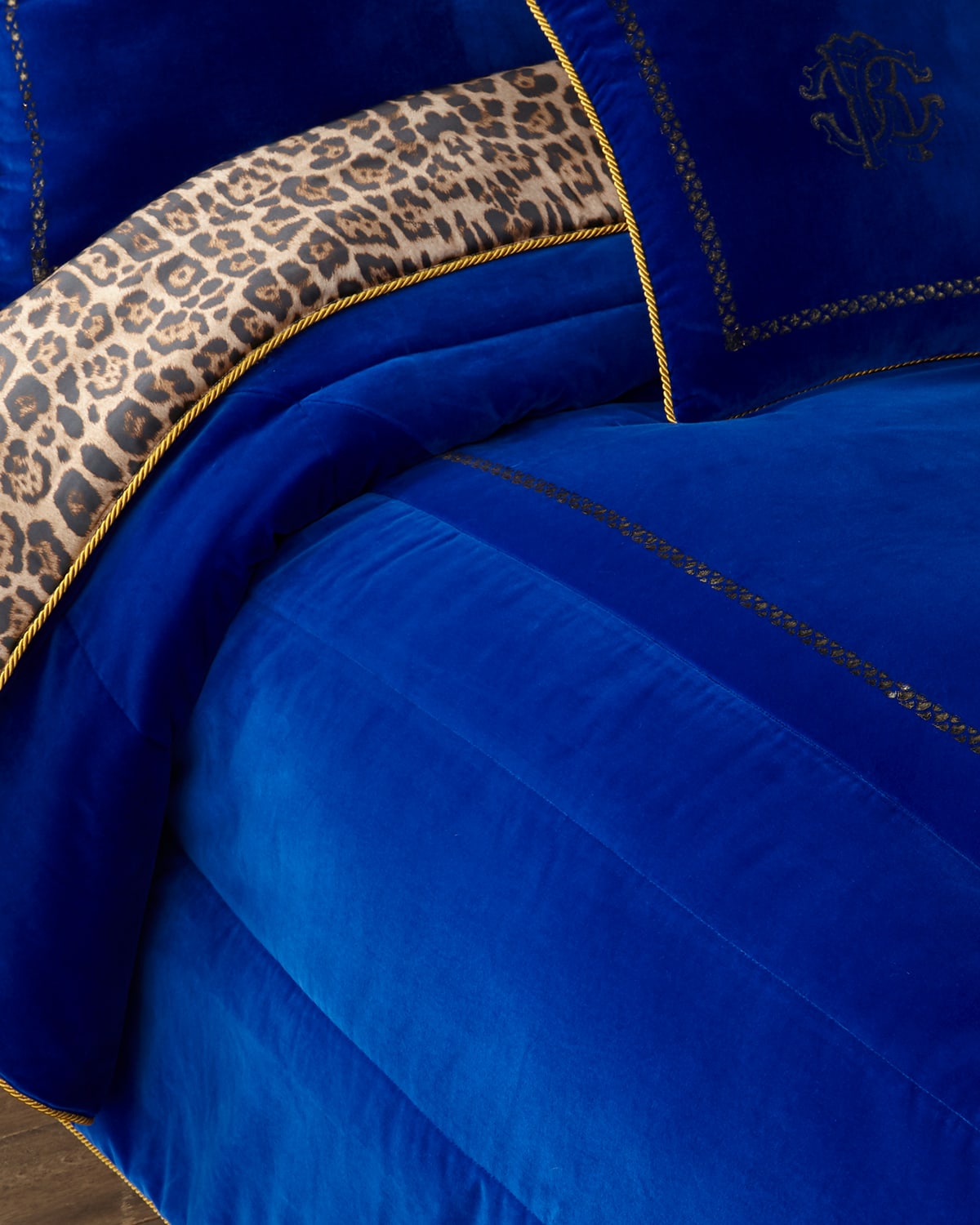 Silk comforter with velvet reverse. 106" x 102". Dry clean. Made in Italy.