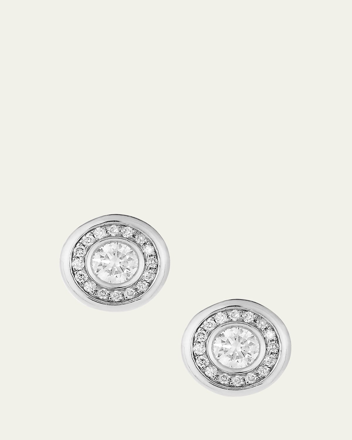 EXCLUSIVELY AT NEIMAN MARCUS Stud earrings by Roberto Coin. 18karat white, rose, or yellow gold. Round diamond center with pave diamond bezel. 0.56 total diamond carat weight. Post backs. For pierced ears. Roberto Coin signature hidden 0.3carat ruby. Made in Italy.