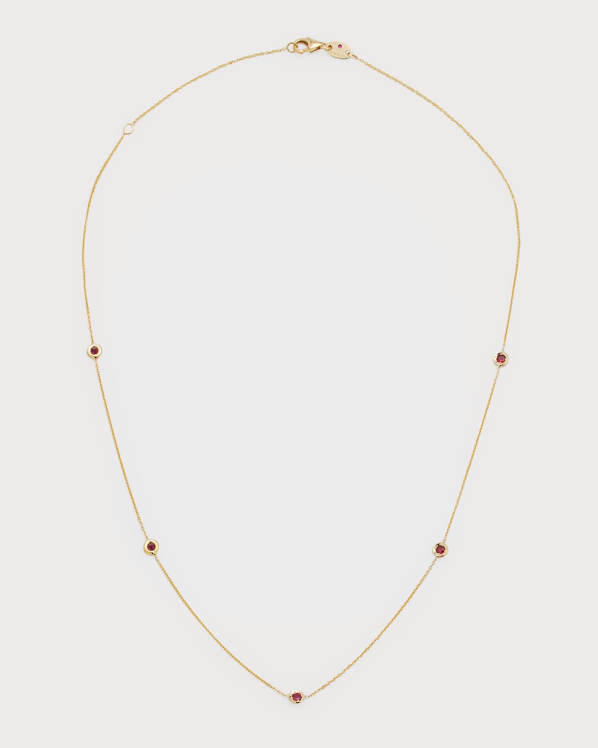 Station necklace by Roberto Coin 18karat yellow gold Five, round bezelset ruby stations Cable chain necklace Interior of jewelry piece includes signature synthetic ruby detail Necklace, 16"L; 2" extender with lobster clasp Made in Italy