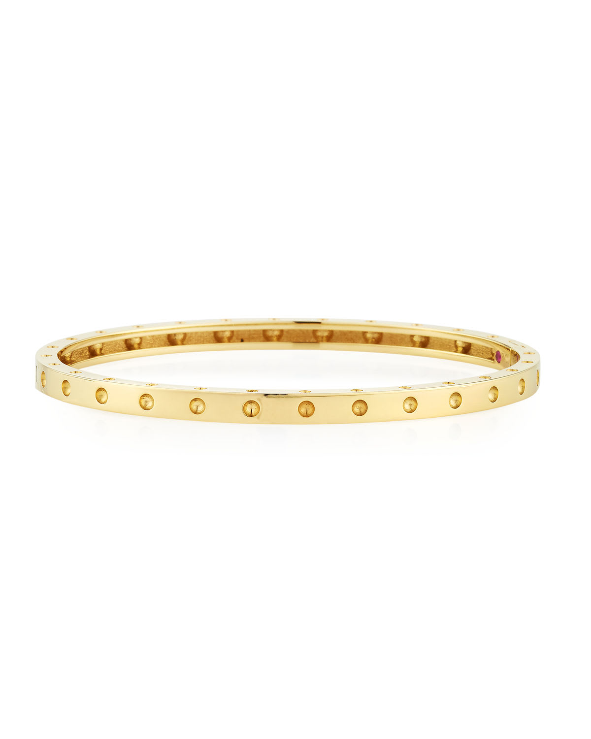 Roberto Coin bracelet 18karat yellow, white or rose gold Polished finish with domed accents Signature hidden genuine ruby Slipon style Made in Italy