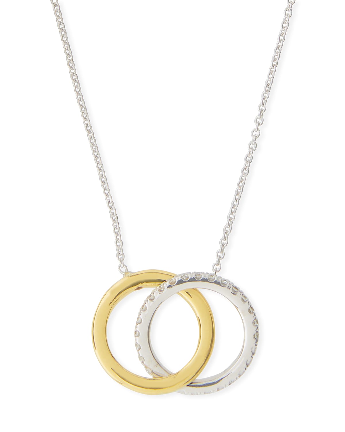 18k Two-Tone Diamond Double-Circle Pendant Necklace