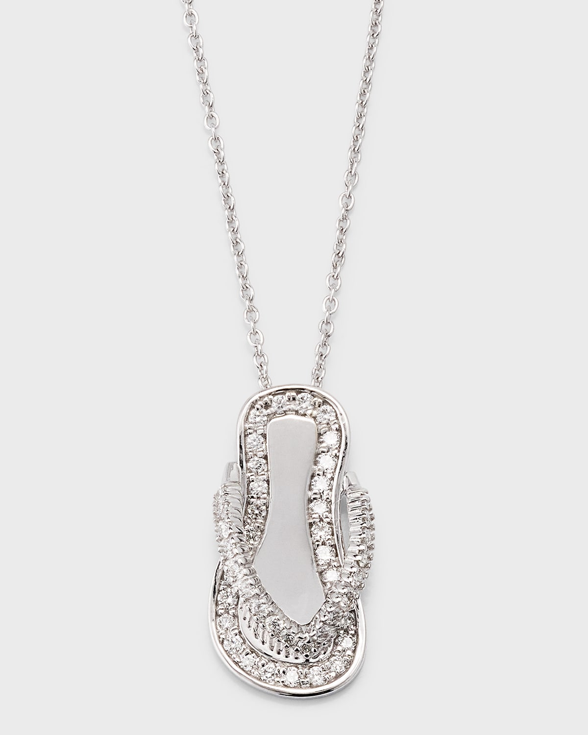 Roberto Coin necklace with a flipflop pendant Necklace length: approx. 1618 inches Polished 18karat white gold Pavéset white diamonds 0.22 total diamond carat weight Hidden genuine ruby Adjustable length Lobster clasp Made in Italy