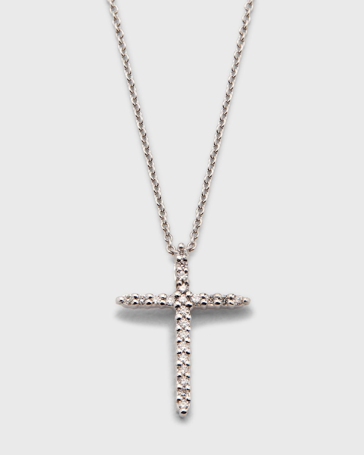 18karat rose, yellow, or white gold. Pave diamond cross pendant. Cable chain necklace. 0.10 total diamond carat weight. Chain necklace, 17.5"L. Cross pendant, 0.8"L. Lobster clasp.