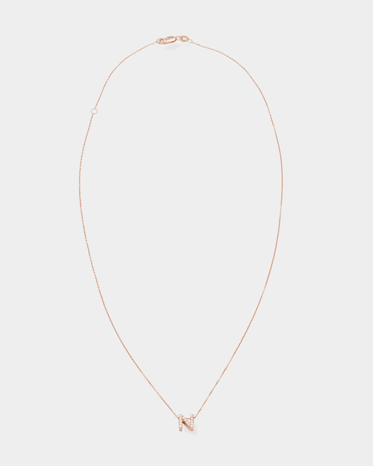 18karat rose, white, or yellow gold; 16"18" chains. Pave diamonds; total carat weight will vary by letter. A, D, E, F, G, H, O, R, U, X ,Z: 0.06 carats. B, M, Q, W: 0.08 carats. C, K, P, S, V: 0.05 carats. I and L: 0.03 carats. J, T, Y: 0.04 carats. N: 0.07 carats. All gemstone carat weights (ct. t.w.) are approximate; variance may be 0.05 carat. Interior of jewelry piece includes signature synthetic ruby detail. Lobster clasp. 16"L to 18"L.