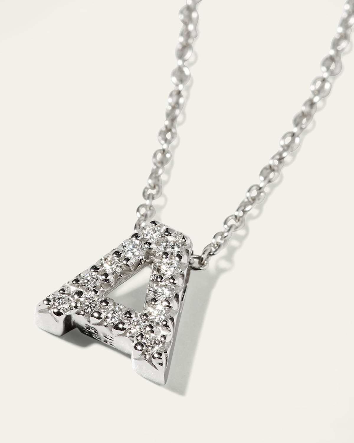 18karat rose, white, or yellow gold; 16"18" chains. Pave diamonds; total carat weight will vary by letter. A, D, E, F, G, H, O, R, U, X ,Z: 0.06 carats. B, M, Q, W: 0.08 carats. C, K, P, S, V: 0.05 carats. I and L: 0.03 carats. J, T, Y: 0.04 carats. N: 0.07 carats. All gemstone carat weights (ct. t.w.) are approximate; variance may be 0.05 carat. Interior of jewelry piece includes signature synthetic ruby detail. Lobster clasp. 16"L to 18"L.