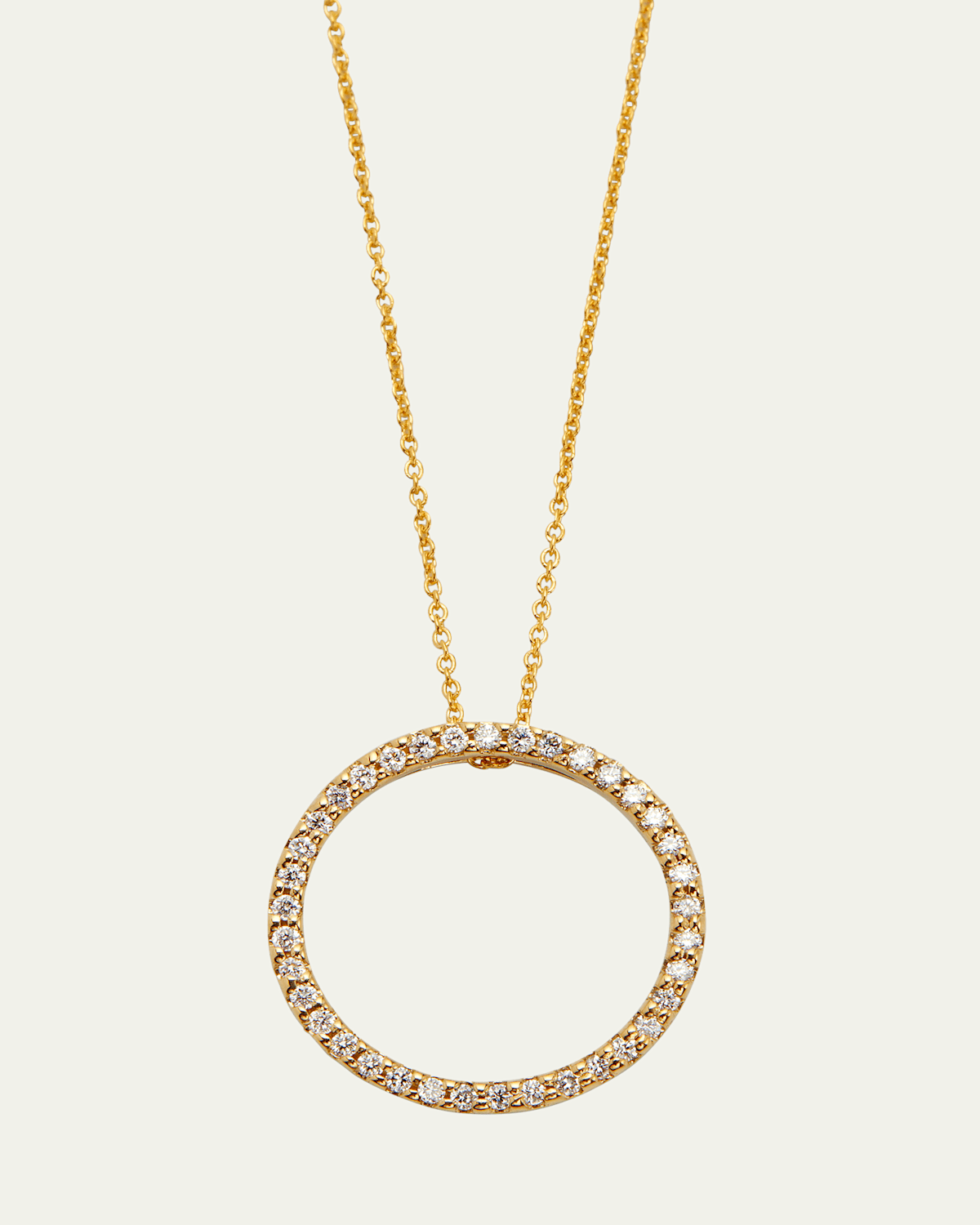 18karat white, rose, or yellow gold. Chain necklace. Circle pendant with pave diamonds, 0.26 total carat weight. Lobster clasp. Pendant, 3/4" diameter. Chain, 18"L. Made in Italy.
