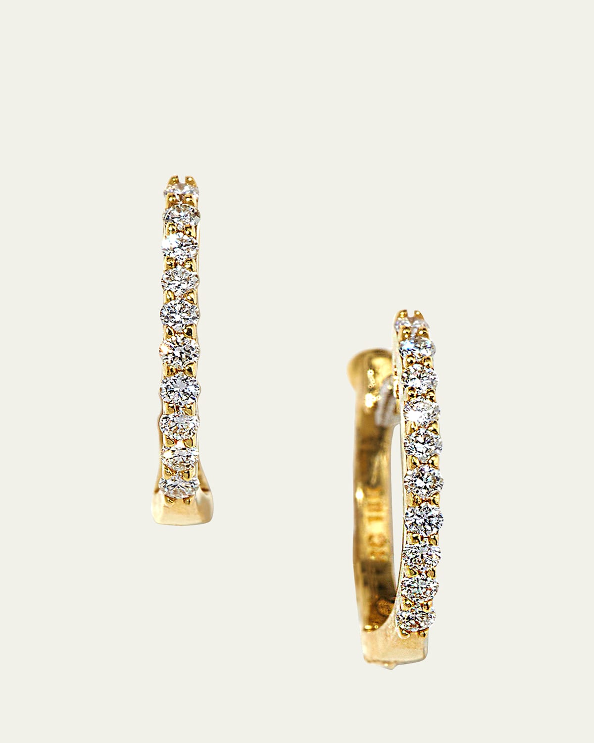 18karat yellow gold horseshoe hoops. Pave diamonds, 0.20 total carat weight. Post backs. 1/2"L. Made in Italy.
