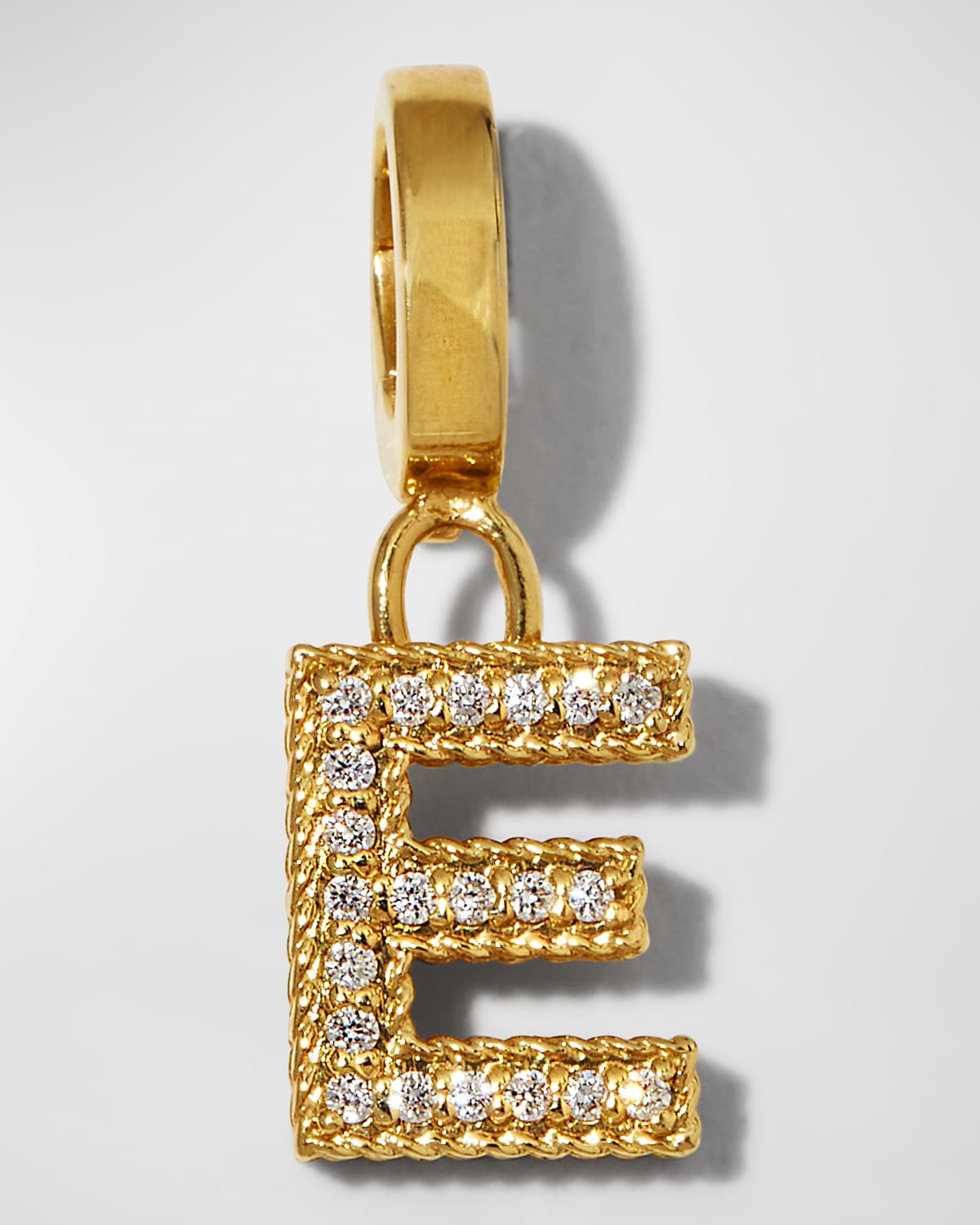 Princess 18K Yellow Gold Diamond Pave Initial Charm, E