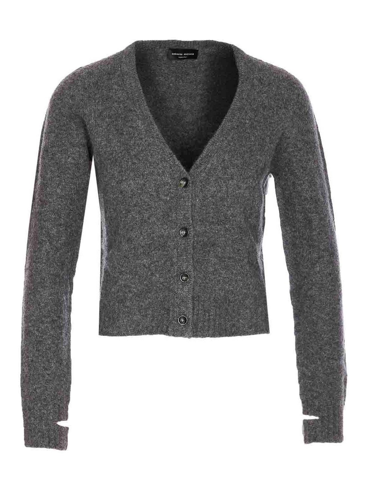 Cardigan gris Roberto Collina, col en V, boutons frontaux, manches longues, nom de la couleur du créateur: gris