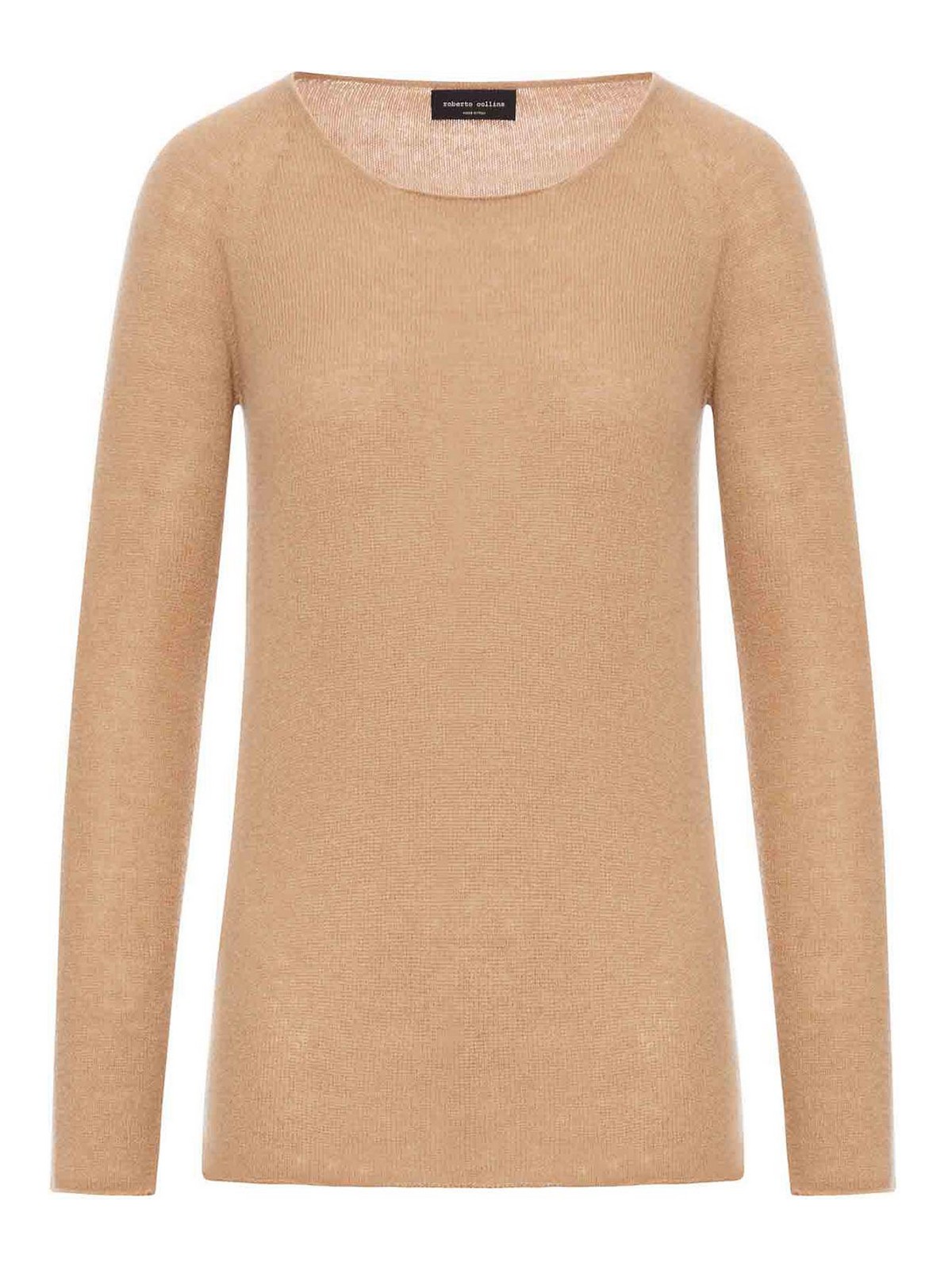 Col rond, encolure large, manches longues raglan, coupe ajustée, brut, bords coupés, couleur
