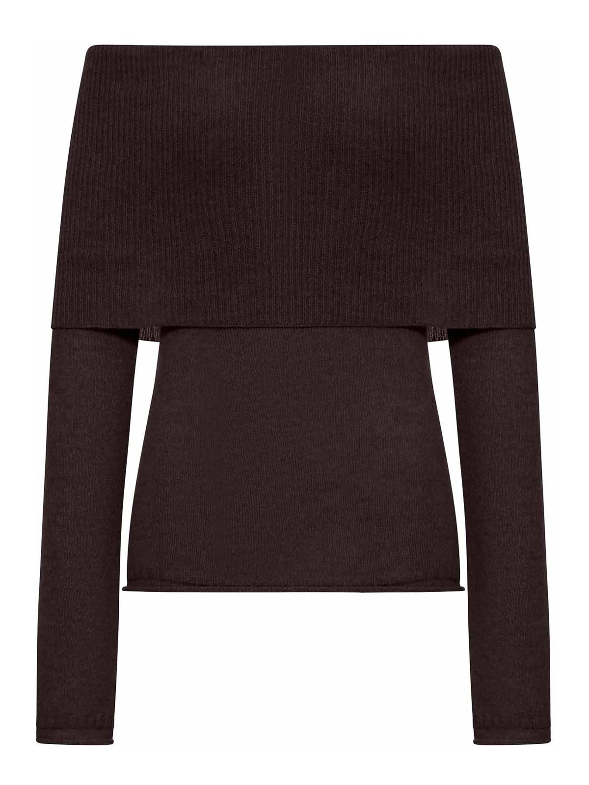 Pull à col bateau, côtelé, manches longues, coupe ajustée, couleur ébène
