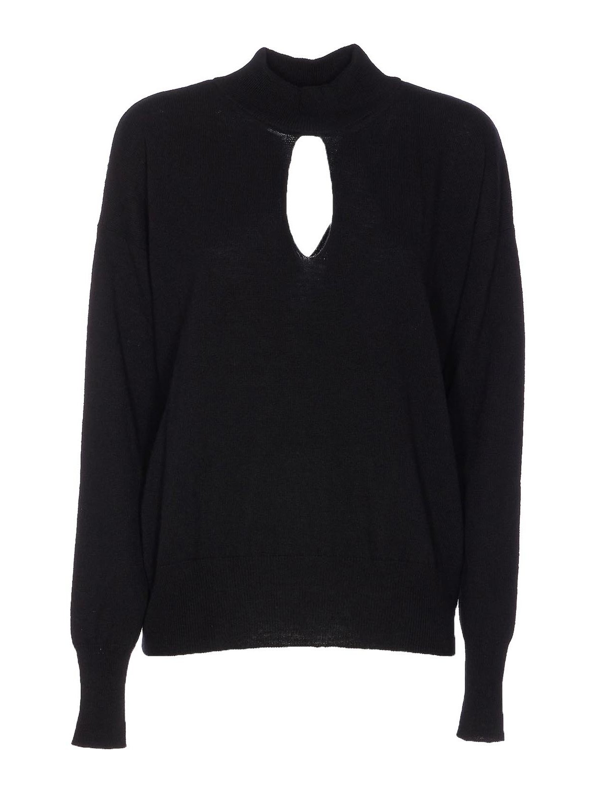 Pull noir Roberto Collina à manches longues et encolure haute découpé dans le dos Nom de la couleur du créateur: noir