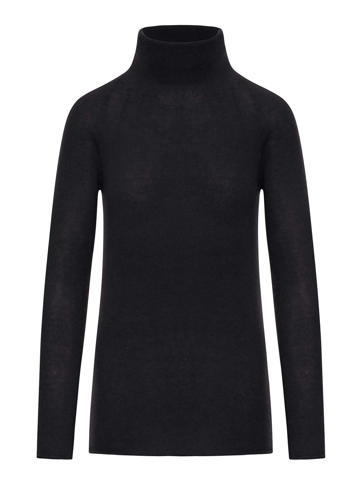 Col roulé côtelé - manches longues raglan - coupe ajustée - bords découpés - couleur noire