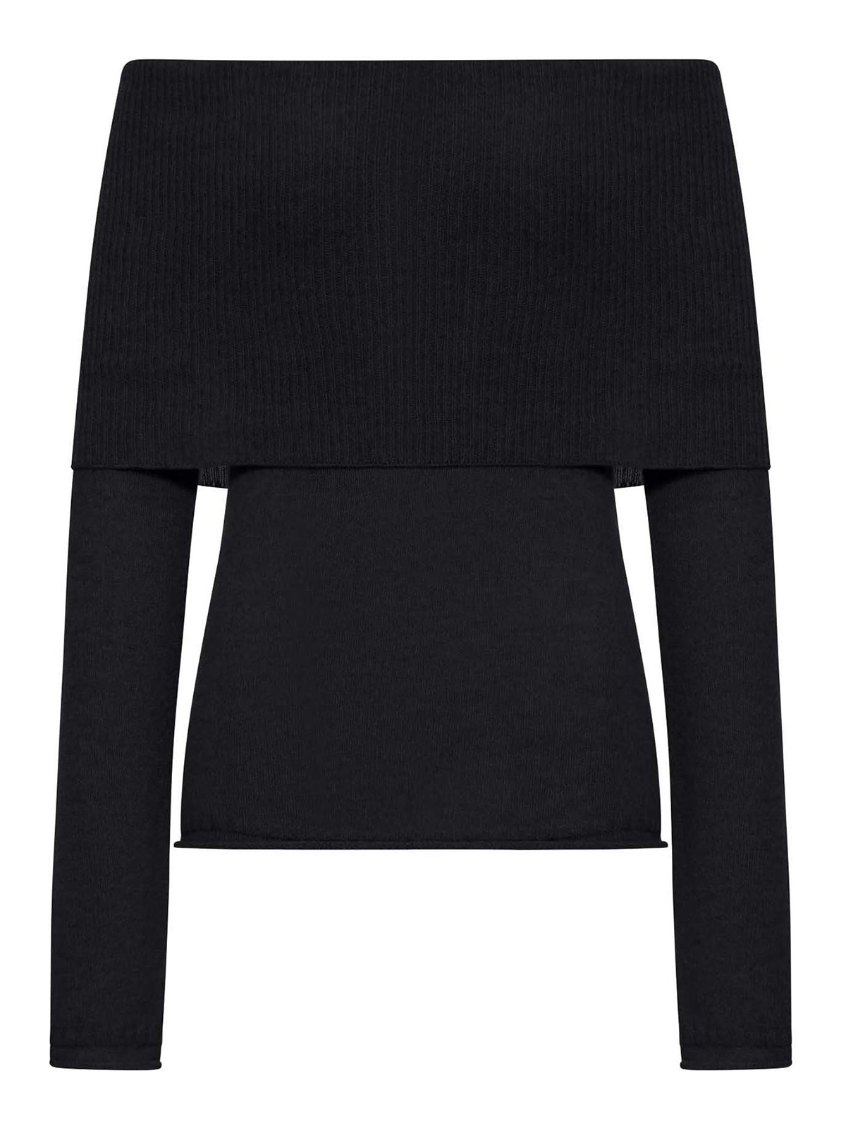 Pull à col bateau, côtelé, manches longues, coupe ajustée, couleur noire
