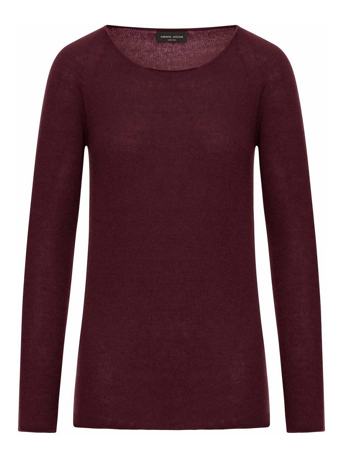 Col rond- encolure large- manches raglan longues- coupe cintrée- bords découpés- bordures colorées