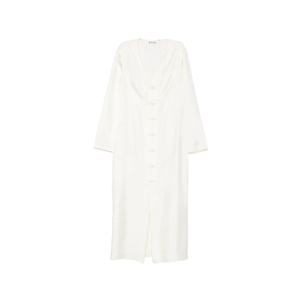 cream button fastening V-neck long sleeves front slit straight hem