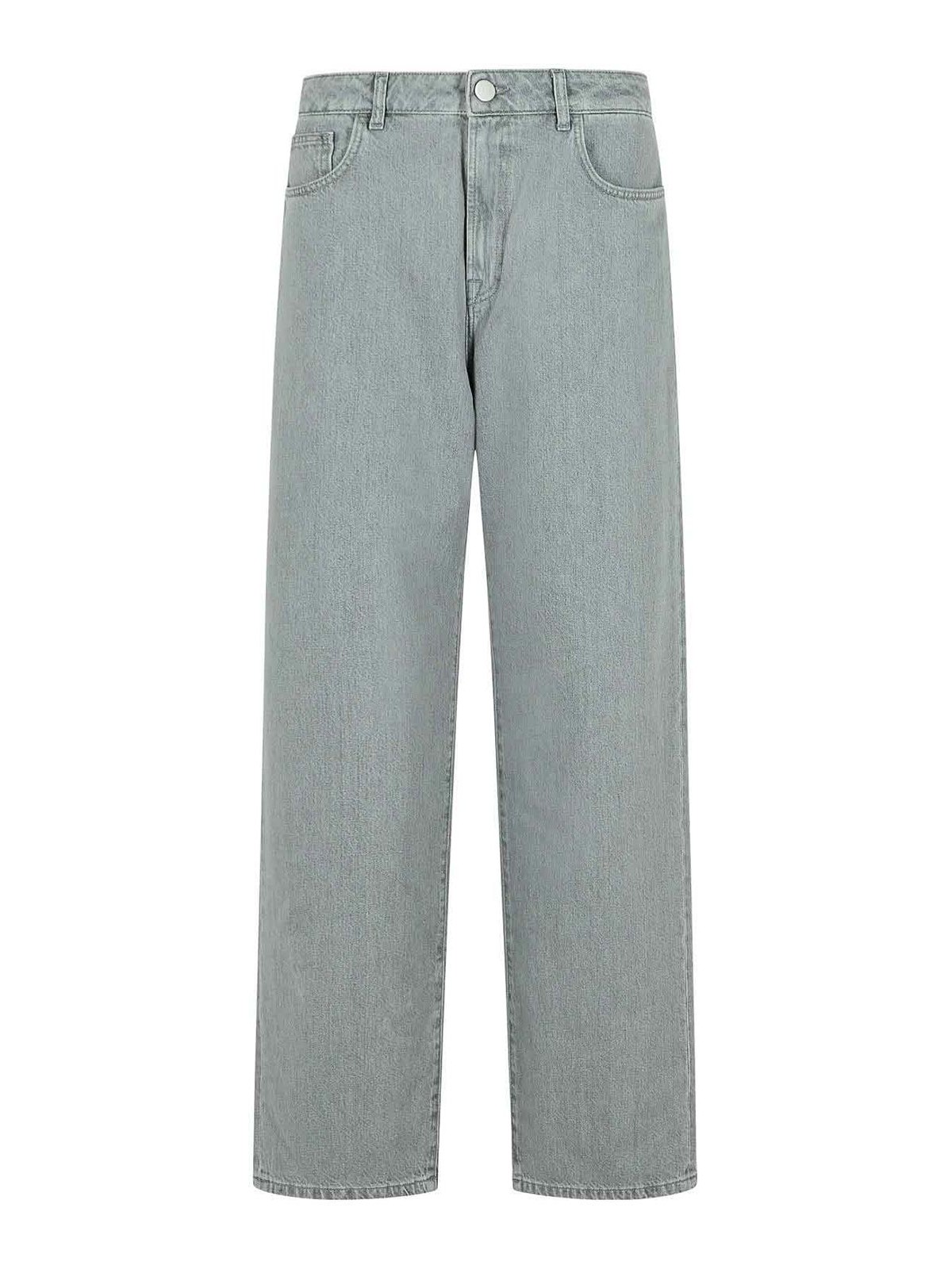 Passants de ceinture gris effet délavé, bouton et fermeture éclair cachée, cinq poches