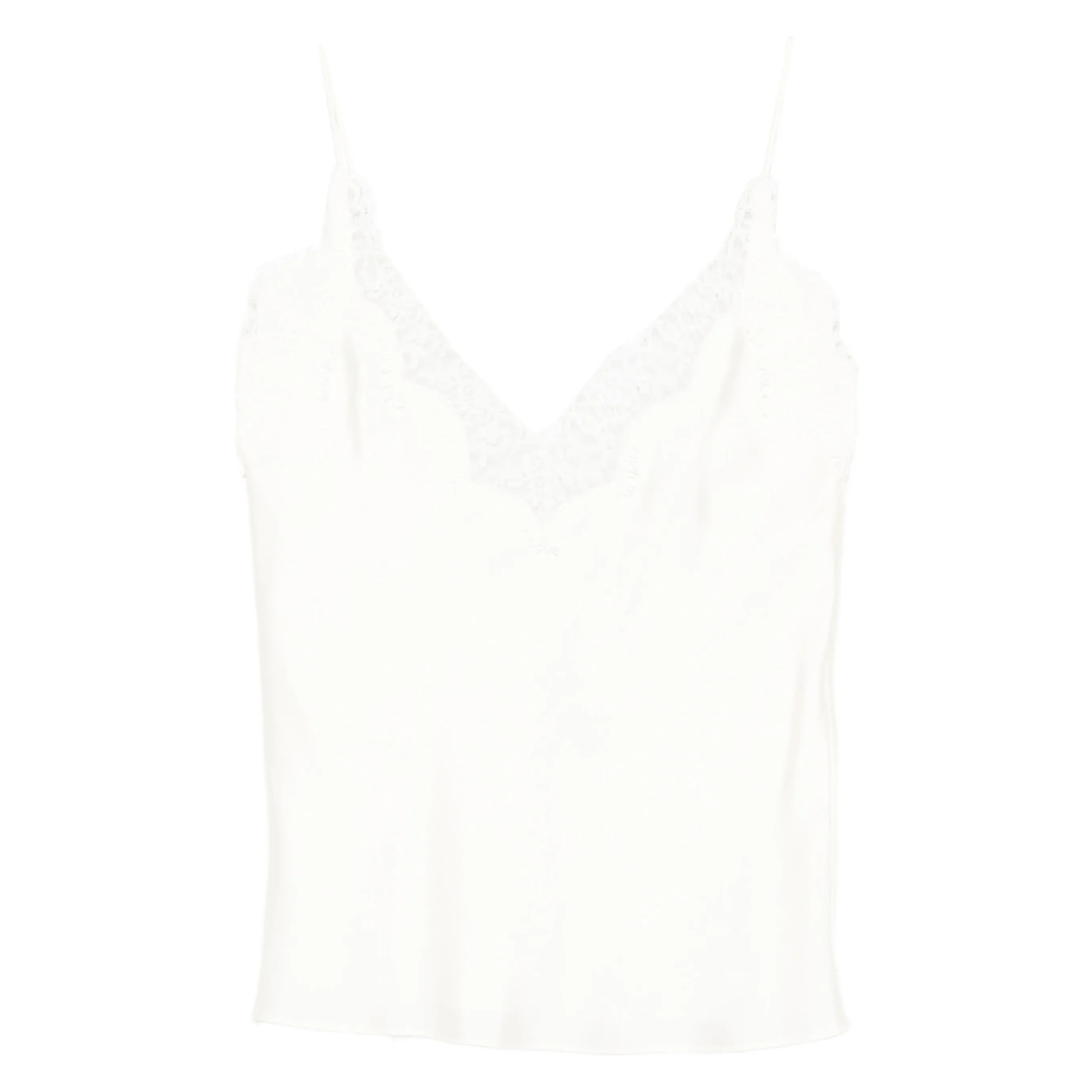 beige lace trim V-neck adjustable straps side tie fastening sleeveless