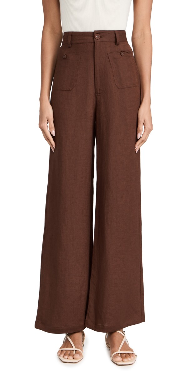 Fabric: Lightweight, non-stretch slubbed weave. Wide-leg silhouette. Ankle length. Button closure and zip fly. Patch and back pockets. Shell: 55% linen/45% viscose. Wash cold. Imported, China. Measurements: Measurements from size XS Rise: 12.5in / 32cm Inseam: 29.5in / 75cm Leg opening: 22in / 56cm