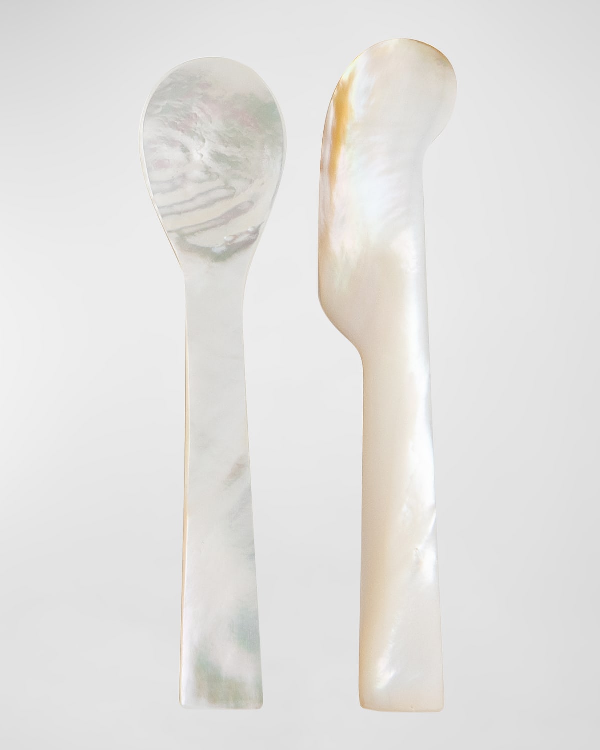 Spoon and spreader made of motherofpearl The material of choice for serving caviar Motherofpearl is nonreactive to caviar Approx. 4"L Set of two Hand wash Made in France