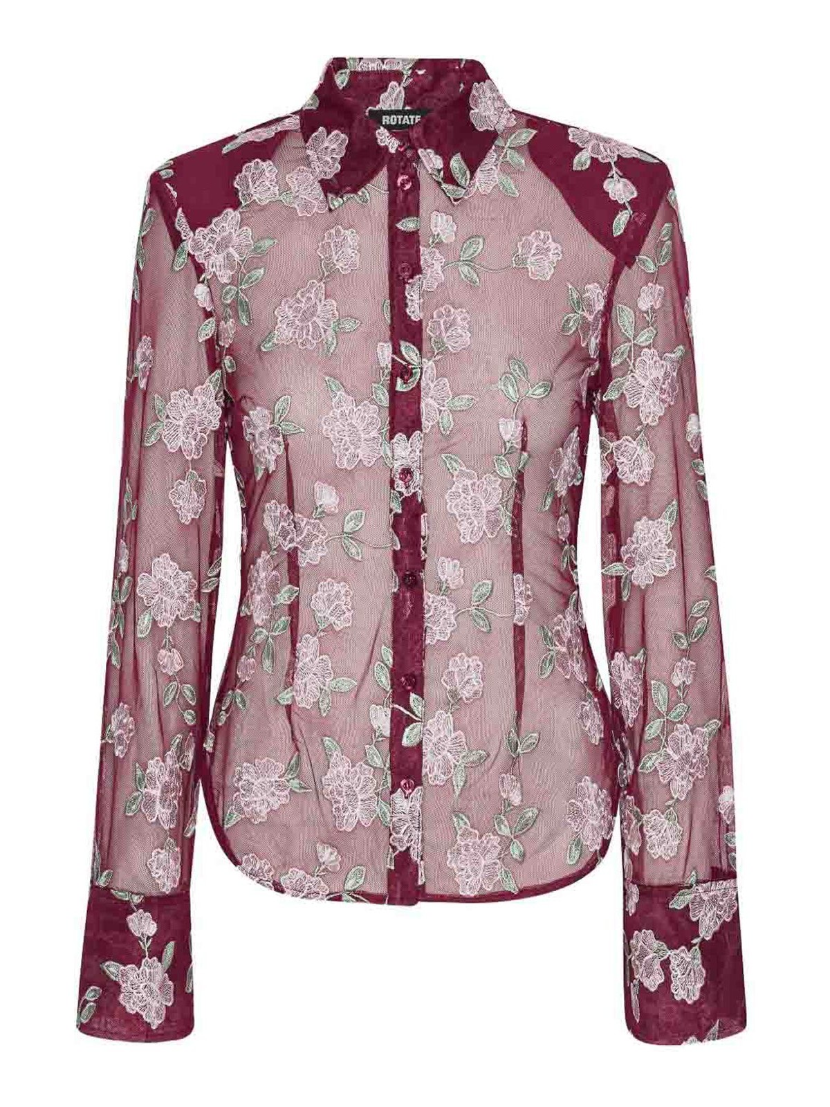 Boutons frontaux à manches longues en forme de fleur bordeaux