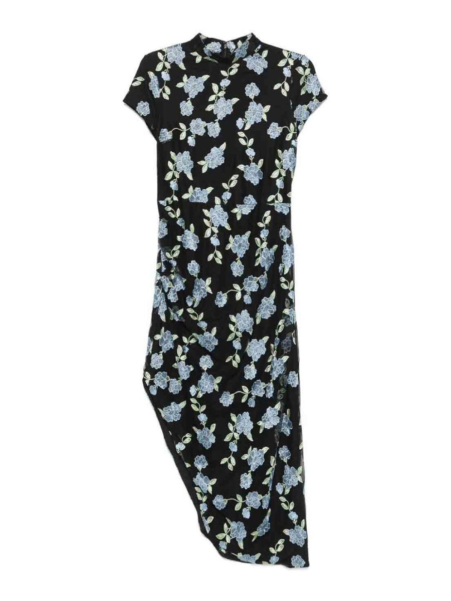 Crochet arrière dissimulé noir et fente latérale zippée, motif floral intégral
