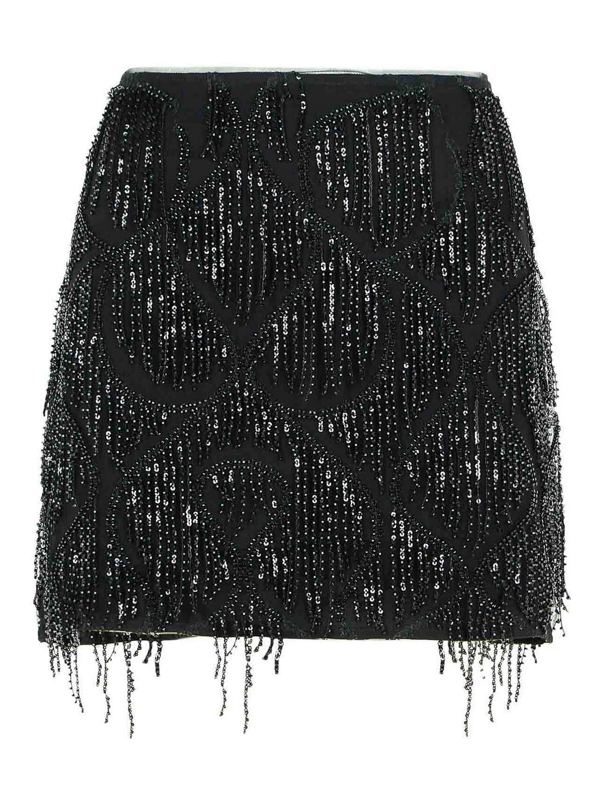 Paillettes et perles décorées en ton sur ton, crochet latéral et ourlet droit zippé