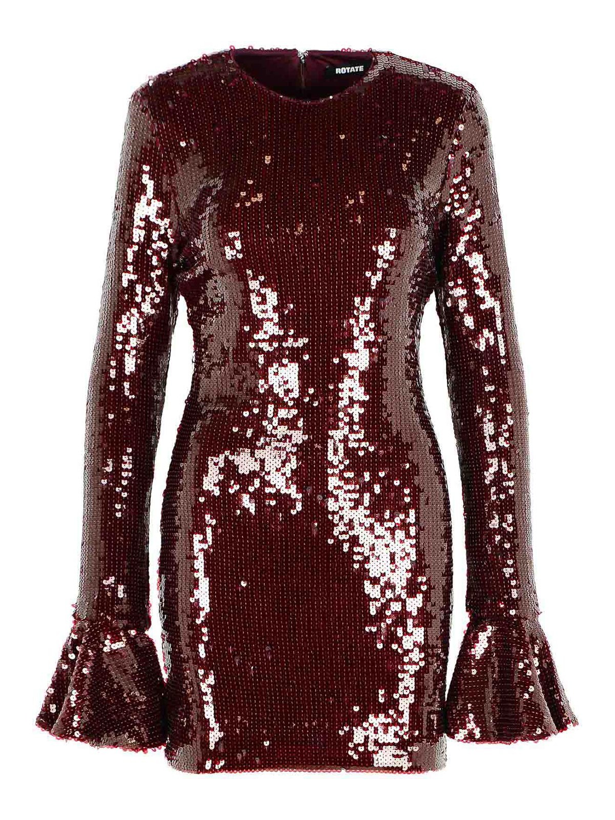 Entièrement doublé en sequins, col rond, manches longues avec fermeture éclair à volants dans le dos