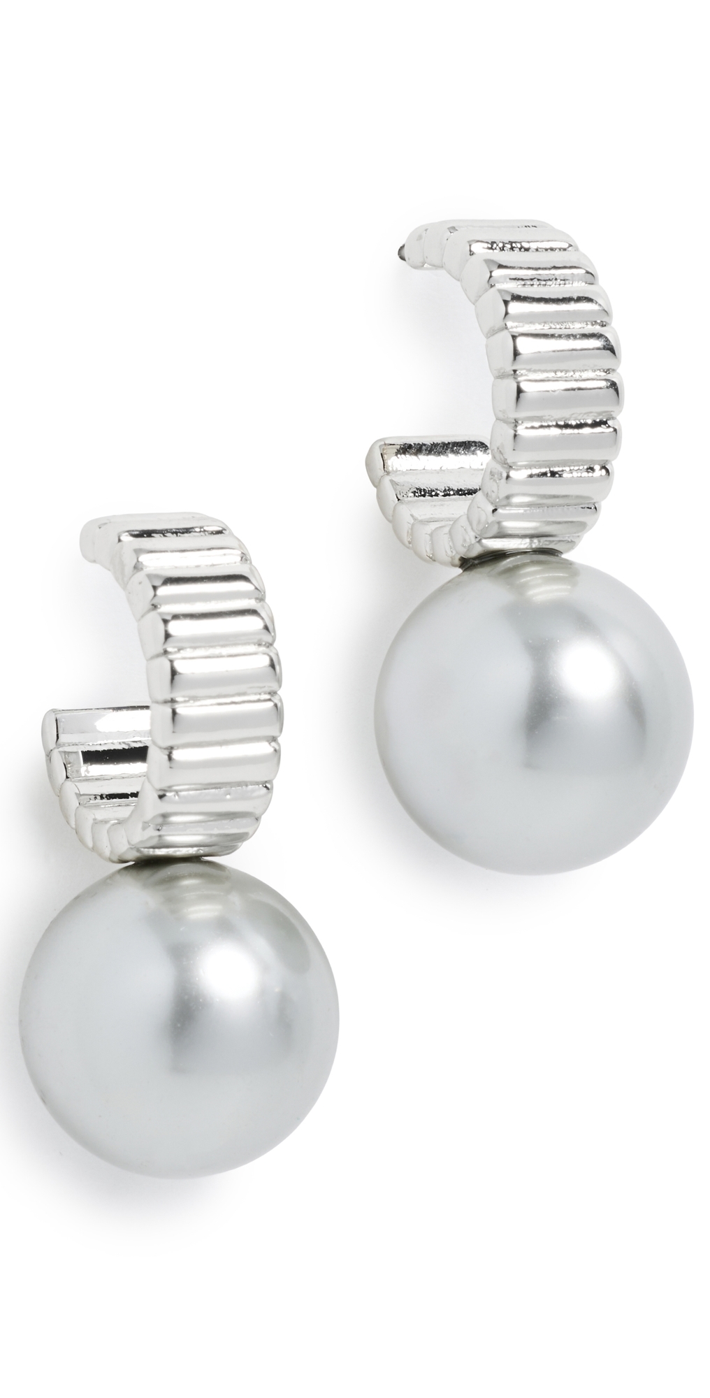 Silver-tone metal. Glass pearls. Brass. Post closure. Imported, China. Measurements: Length: 1.25in / 3.0cm