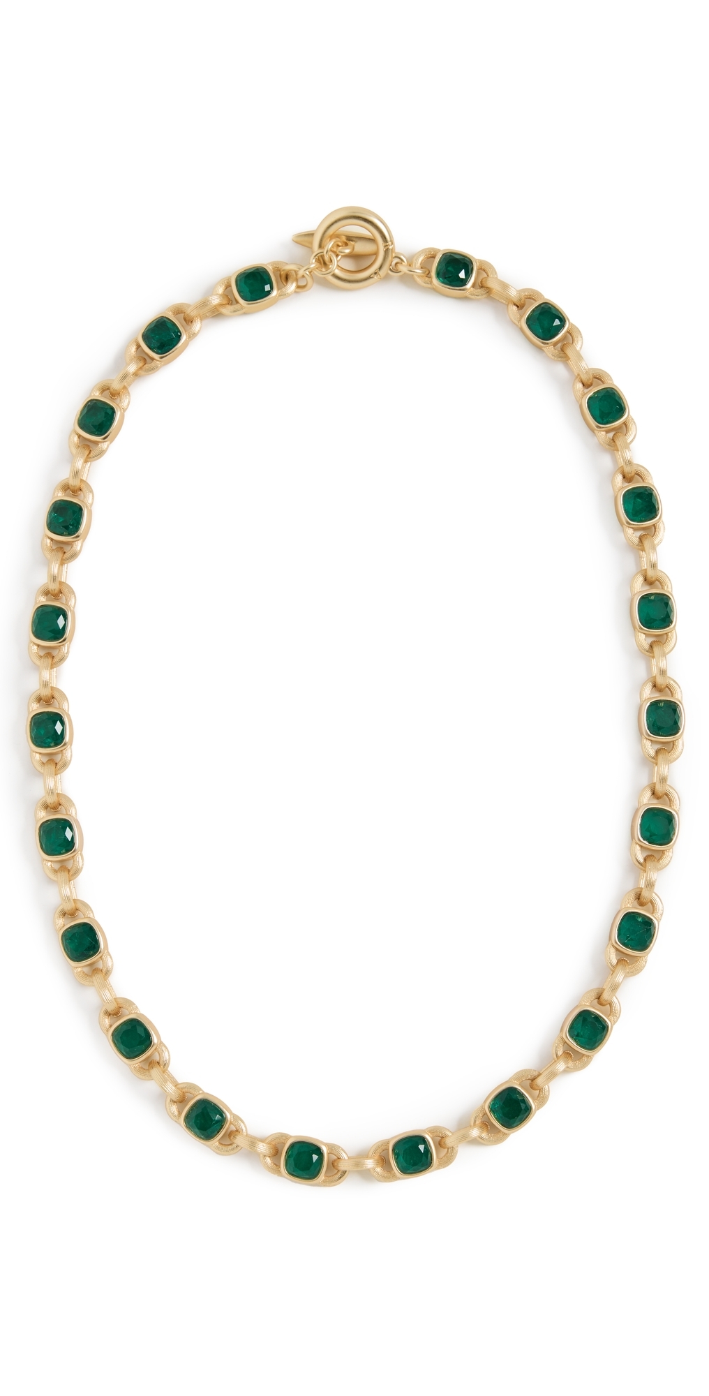 The Large Jeweled Link Necklace Shiny Gold/Emerald