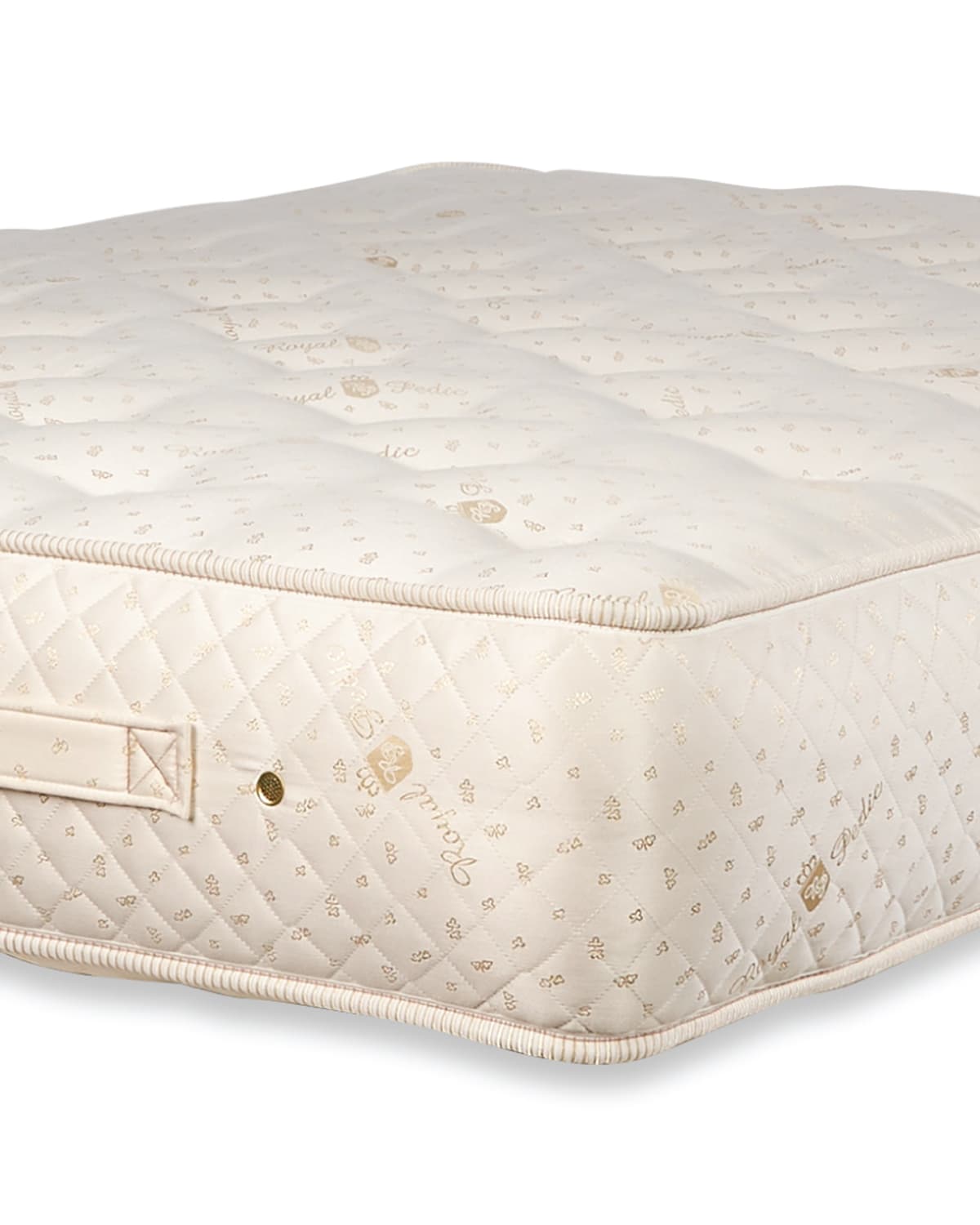 The Dream Spring Ultimate Firm Mattress is the top of the line in our firm category featuring the finest breathable natural materials, such as Camel Hair, Cashmere, Silk, French Wool, and Pristine Staple Cotton surrounding British Titanium Micro Coils and our Dream Spring 3100S 12 turn pocketed innerspring unit made in Germany resulting in over 10,000 coils in a king size mattress contouring and supporting the body's natural curves, all secured in place using our Artisan handtufting process resulting a firm, yet very comfortable support. For more plushness, you can add either of our Dream Spring pillow top pads. Mattress is approx. 10" thick. Dream Spring Mattresses are individually handcrafted by RoyalPedic, a Southern California based 70%2B year old luxury mattress maker who has made mattresses for 7 US Presidents, numerous Hollywood Celebrities, Royalty, Professional sports stars, along with generations of families that want a restful, healthy, and truly reenergizing great night's sleep. Mattress carton: 61"W x 81"L x 10"T; weighs 150 lbs. For optimal use and longevity, rotate mattress head to foot one month, flip it over the next month. On a king size bed, lay in the middle some, especially when the mattress is brand new to maintain a level sleeping surface. Use a washable mattress pad as an extra layer of sanitary protection. Made in the USA of imported materials. Boxed weight, approximately 150 lbs.