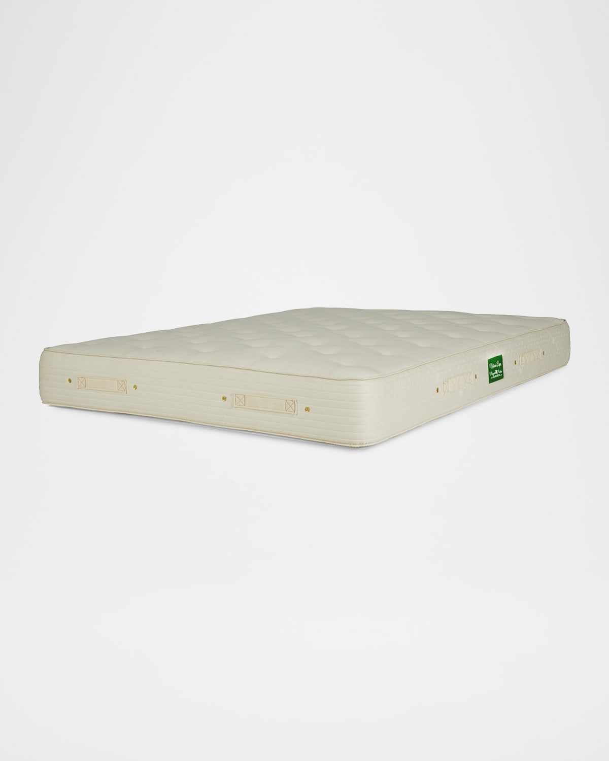 The Nature Luxe Mattress features ultrasupportive, heattempered innersprings, and TSpring Side Supports for edgetoedge sleeping comfort. As the firmest mattress in the Nature Luxe Collection, it provides orthopedic support. For added surface plushness, we recommend either the Nature Luxe 2" or 4" Pillowtop Pads, which will result in a synergy of buoyant support of the mattress combined with the exquisite comfort of the pillowtop pad. Made with the finest Texasgrown organic cotton and pristine French wool layers on both sides of the mattress to optimize support, breathability, and longevity. The soft and luxurious natural cover, made with organic cotton, enhances airflow to ventilate body heat and promotes a healthy, restful sleep. Handcrafted of organic cotton and wool Overall, approx. 76"W x 80"L Comfort Level: Firm Mattress Top: Twosided Mattress Construction: Innerspring Box spring sold separately Item Weight, 165.0lbs Made in USA Boxed Weight, approximately 180.0lbs
