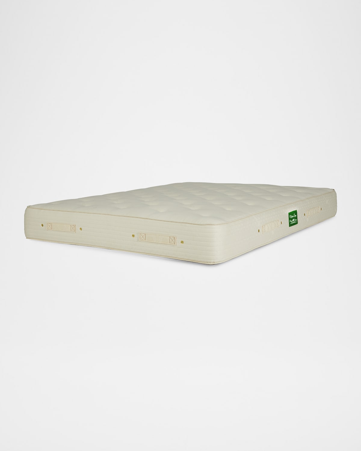 The Nature Luxe Mattress features ultrasupportive, heattempered innersprings, and TSpring Side Supports for edgetoedge sleeping comfort. As the firmest mattress in the Nature Luxe Collection, it provides orthopedic support. For added surface plushness, we recommend either the Nature Luxe 2" or 4" Pillowtop Pads, which will result in a synergy of buoyant support of the mattress combined with the exquisite comfort of the pillowtop pad. Made with the finest Texasgrown organic cotton and pristine French wool layers on both sides of the mattress to optimize support, breathability, and longevity. The soft and luxurious natural cover, made with organic cotton, enhances airflow to ventilate body heat and promotes a healthy, restful sleep. Handcrafted of organic cotton and wool Overall, approx. 72"W x 84"L Comfort Level: Firm Mattress Top: Twosided Mattress Construction: Innerspring Box spring sold separately Item Weight, 165.0lbs Made in USA Boxed Weight, approximately 180.0lbs