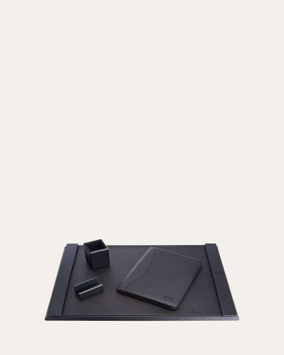 Boardroom ready. Designed for the contemporary executive, this ROYCE office collection features desk pencil cup organizer, writing portfolio organizer with 8.5" x 11" lined writing pad, blotter with two side panels, and business card display holder. All items handmade of genuine leather with suede lining. Complimentary monogramming in style shown. Imported.