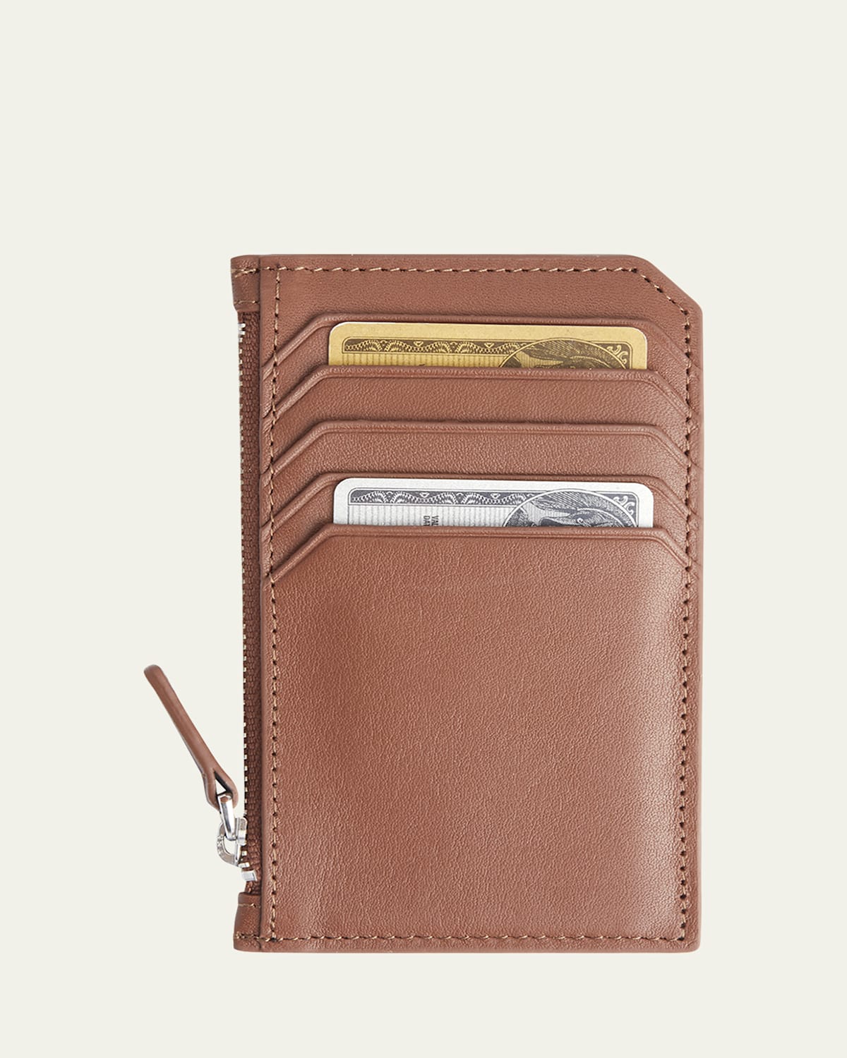 Monogrammed Zippered Leather Credit Card Case