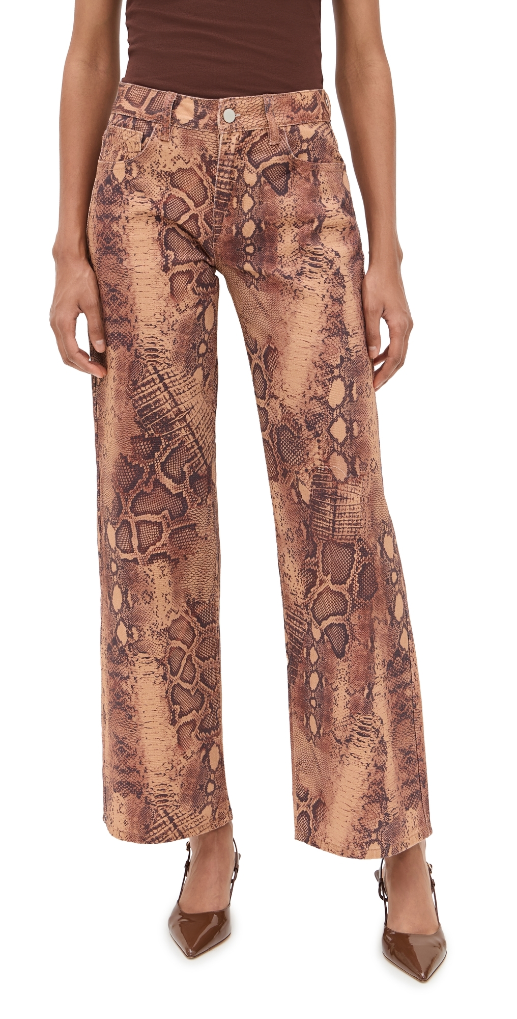 Fabric: Mid-weight, non-stretch denim. Snake print. Button closure and zip fly. 5-pocket styling. Shell: 100% cotton. Wash cold. Imported, China. Measurements: Measurements from size S Rise: 9.5in / 24cm Inseam: 30.75in / 78cm Leg opening: 21.25in / 54cm