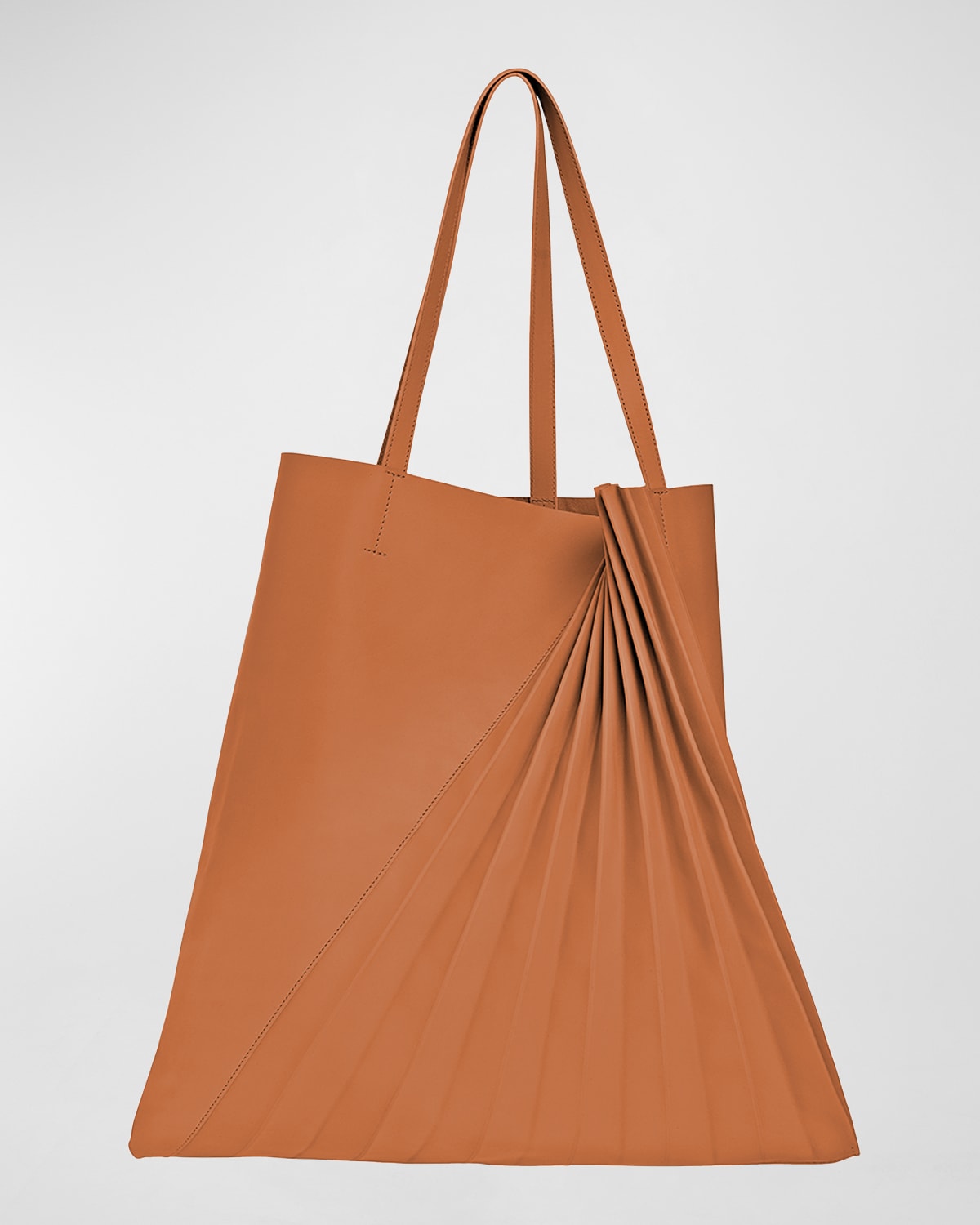 Sabrina Zeng's sculptural "Chiaroscuro" tote is detailed with the designer's signature pleats this is a bag has a life of its own. Perfect for offduty days or the office, this lightweight piece is equipped with a detachable pouch to keep your essentials. Sabrina Zeng pleated lambskin leather tote bag Fixed shoulder straps Open top Leashed zip pouch Lining: Organic cotton Approx. 16"H x 17"W x 1.5"D Professional cleaning recommended Made in Italy