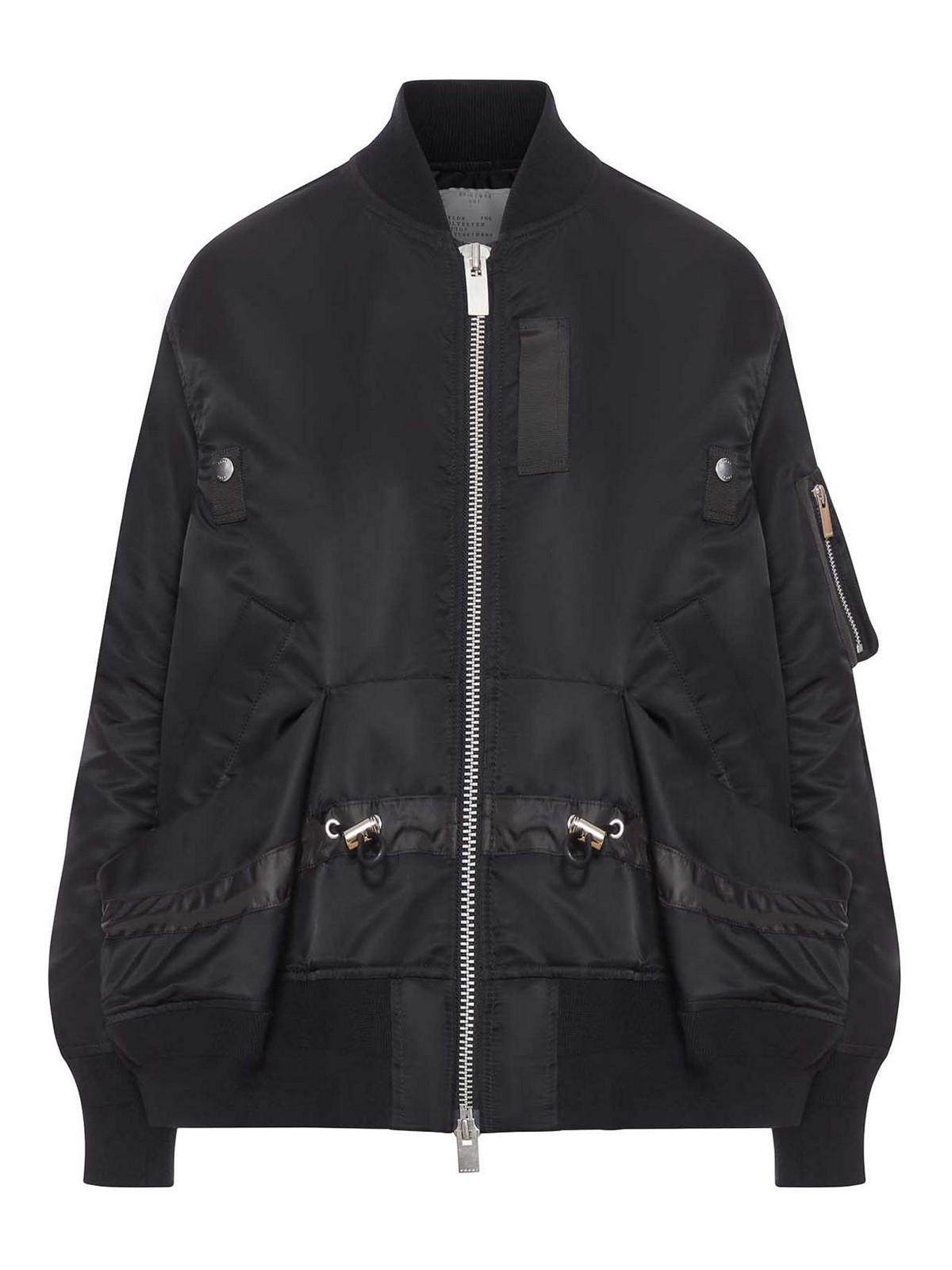 Technique avec finition, fermeture éclair bidirectionnelle, poche gauche avec fermeture éclair, poignets et ourlet côtelés élastiqués, bande plissée au dos pour un effet structuré, bande à cordon ajustable sur le dessus, couleur noire