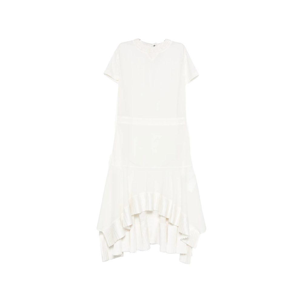 off-white ruffled hem short-sleeve round neck back button fastening sheer panel