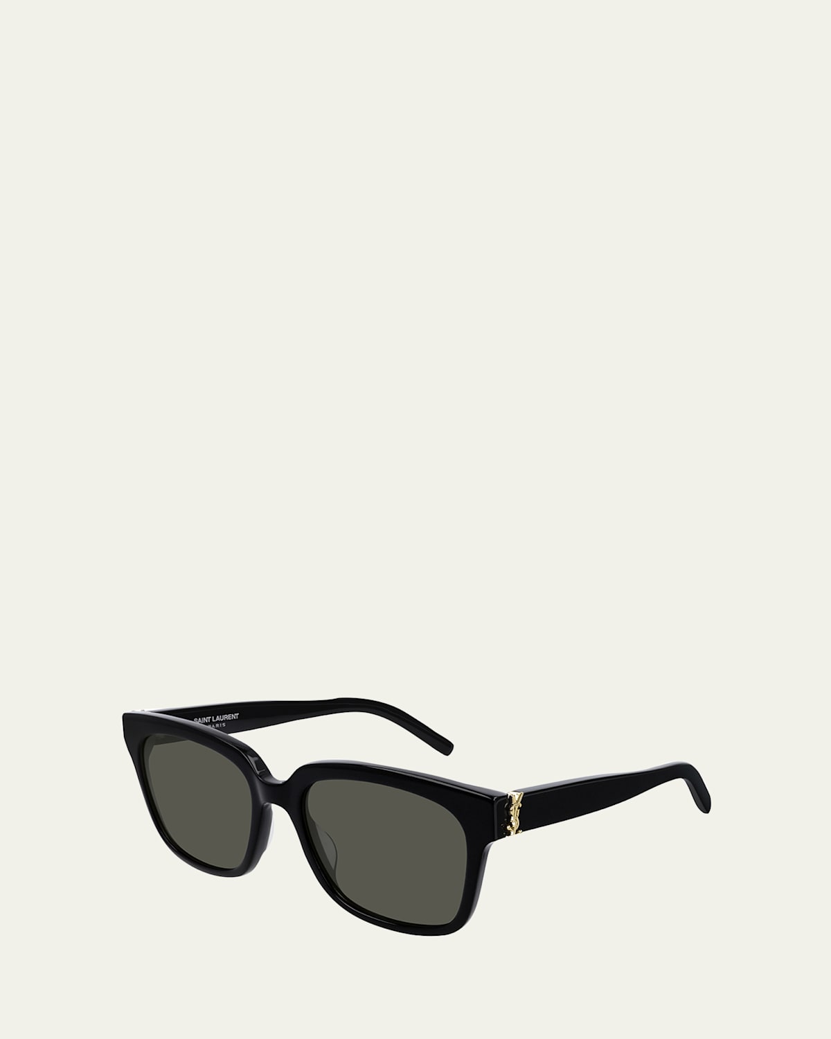 Saint Laurent square sunglasses in acetate. Lens/bridge/temple (in mm): 5418140. Monochromatic lenses. Interlaced YSLmonogram inset at temples. Tapered arms. 100% UVA/UVB protection. Made in Italy.