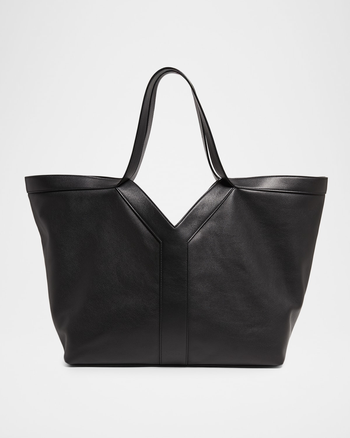 Crafted in finely grained leather, this Saint Laurent tote bag is relaxed and spacious, decorated with a subtle Y stitched signature Flat shoulder straps, 10.2" drop Open top with interior hook closure Interior, one zip pocket Tonal suede lining Approx. 12.6"H x 14.6"W x 8.7"D Made in Italy