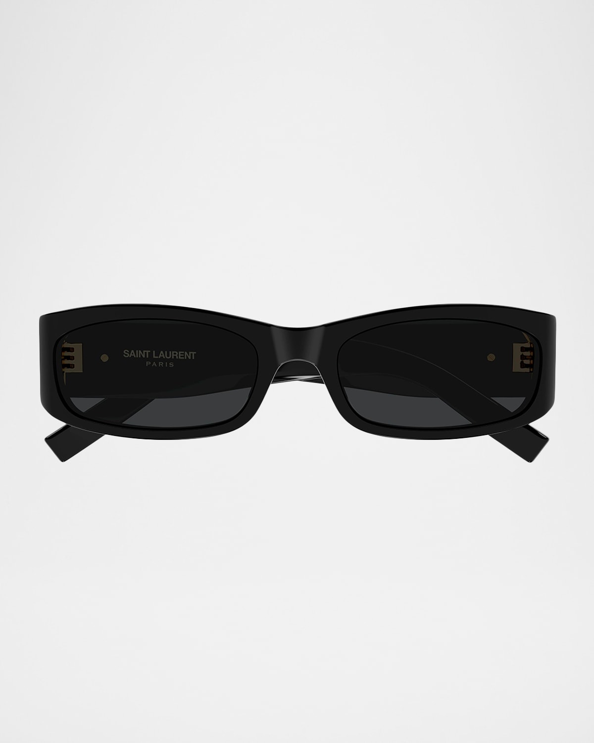 The "SL M152" acetate sunglasses by Saint Laurent feature the iconic Cassandre YSL logo at the hinges. Lens/bridge/temple (in mm): 5618130 Rectangular frames Solid lenses Fixed nose pads Wide, tapered arms Includes case and cleaning cloth 100% UVA/UVB protection Made in Italy