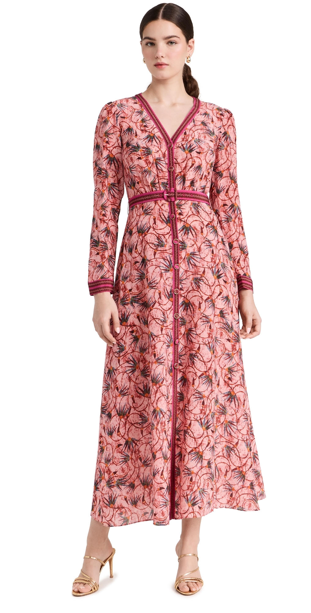 Fabric: Lightweight, non-stretch crepe. V neckline and long sleeves. Button placket. Optional, self-belt with buckle closure. Bias-cut skirt for subtle stretch and a fluid drape. Shell: 100% silk. Dry clean. Imported, China. Measurements: Measurements from size 0 Length: 52in / 132.0cm, from shoulder