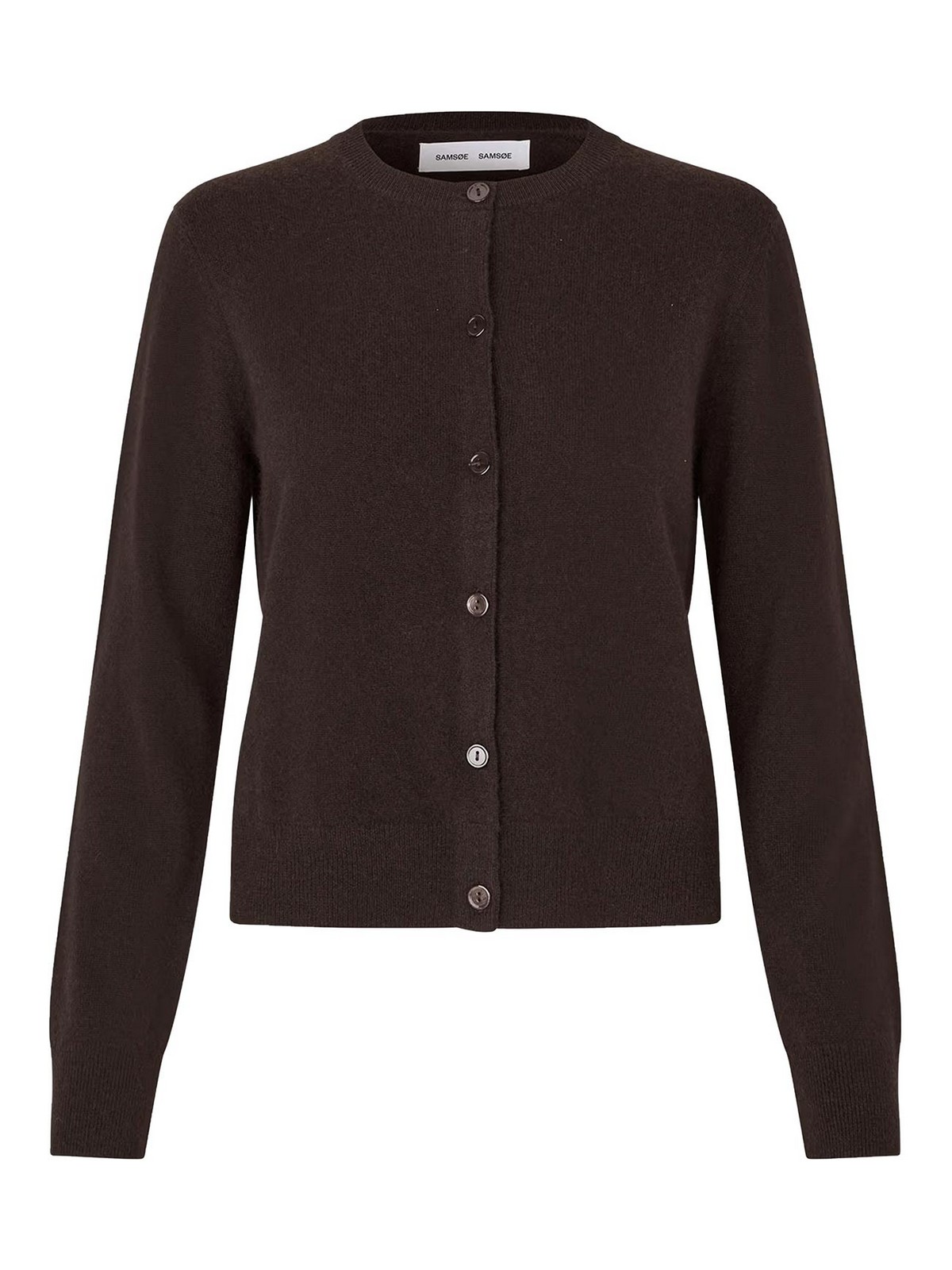 Cardigan Saboston Cardigan à enfilage classique avec boutons au niveau du cou, des poignets et des caurs, tricoté avec la côte.