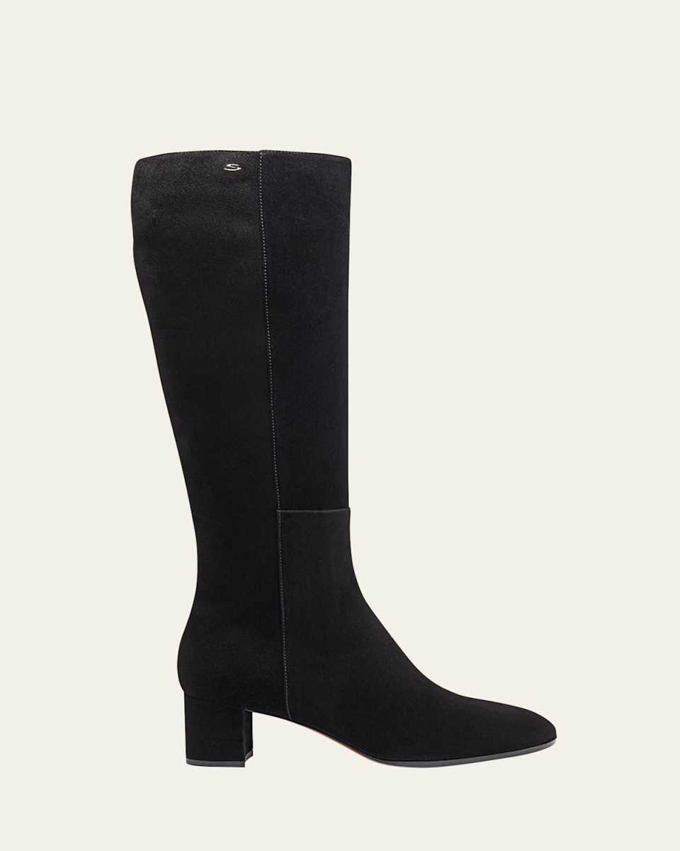 Suede Block-Heel Knee Boots
