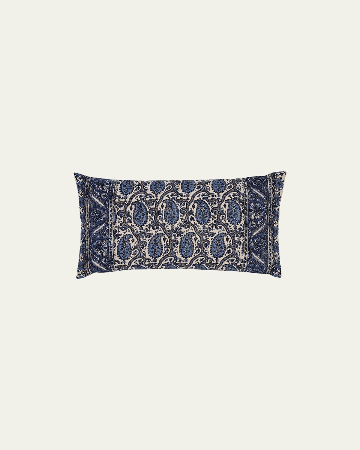 This pillow features Daria Handprinted Paisley with a knife edge finish Part of the Cabana collection, Daria Handprinted Paisley in indigo is particularly meaningful: It was inspired by an antique Indian textile from the childhood home of Martina Mondadori, Cabana's founder Screenprinted by hand on linen and purposely a bit offregister to evoke the unique character and handmade charm of the original, this lovely multipurpose fabric has borders that can be cut off and used separately if so desired Pillow includes a feather/down fill insert and hidden zipper closure Linen Approx. 15"L x 5"W x 26"T Item Weight (Lbs.): 4.0 Dry Clean Made in India